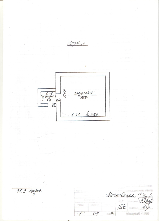 Площадь – 536.8 кв.м., в том числе подвал - 35.9 кв.м.. Объем здания – 2250 куб. м.. Год постройки – 1975.