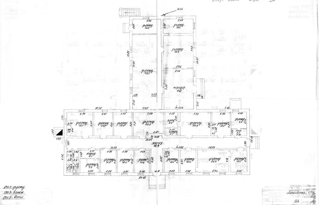 Площадь – 536.8 кв.м., в том числе подвал - 35.9 кв.м.. Объем здания – 2250 куб. м.. Год постройки – 1975.