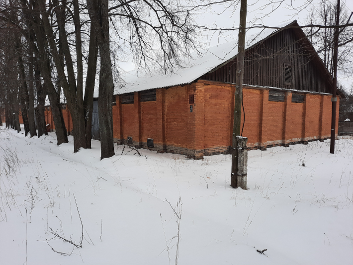 Фундамент бетонный, полы бетонные, стены кирпичные, крыша шиферная.